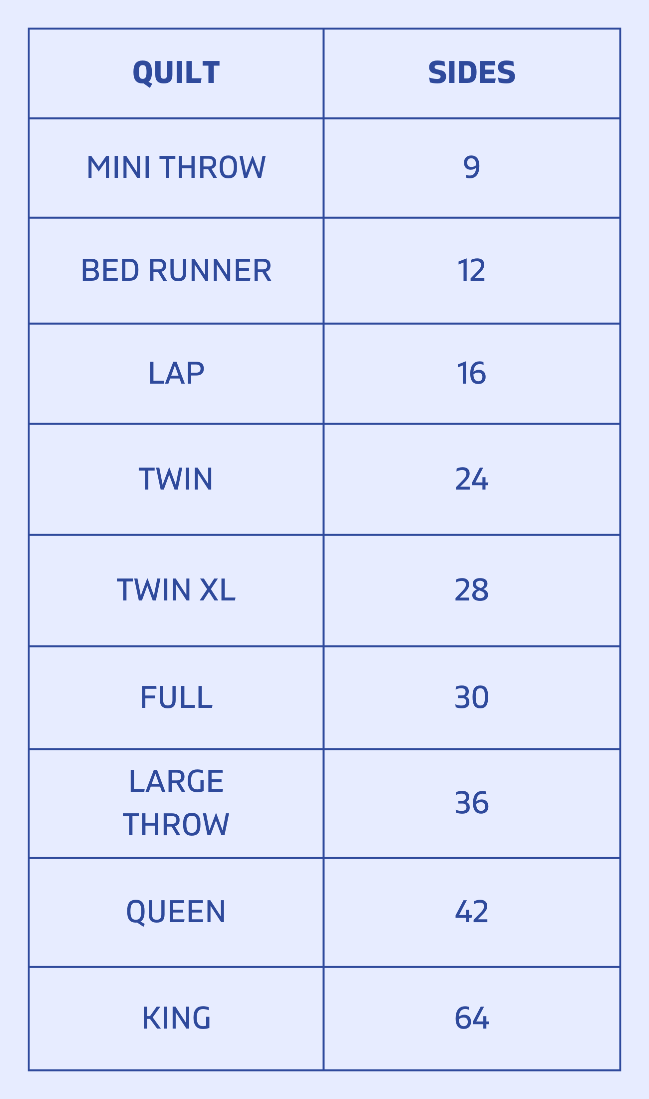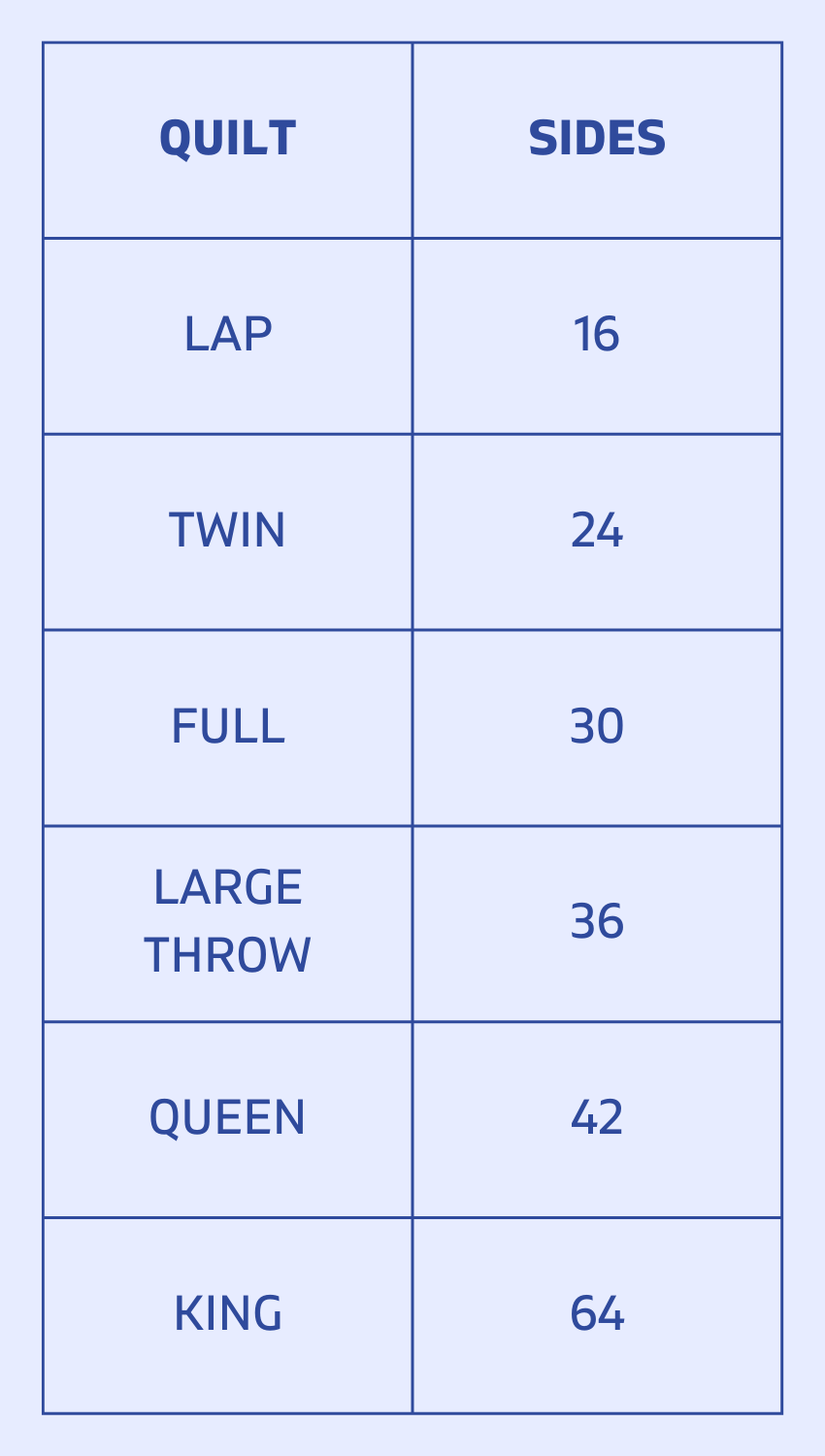If you ordered a double-sided quilt, send TWICE the number of sides!